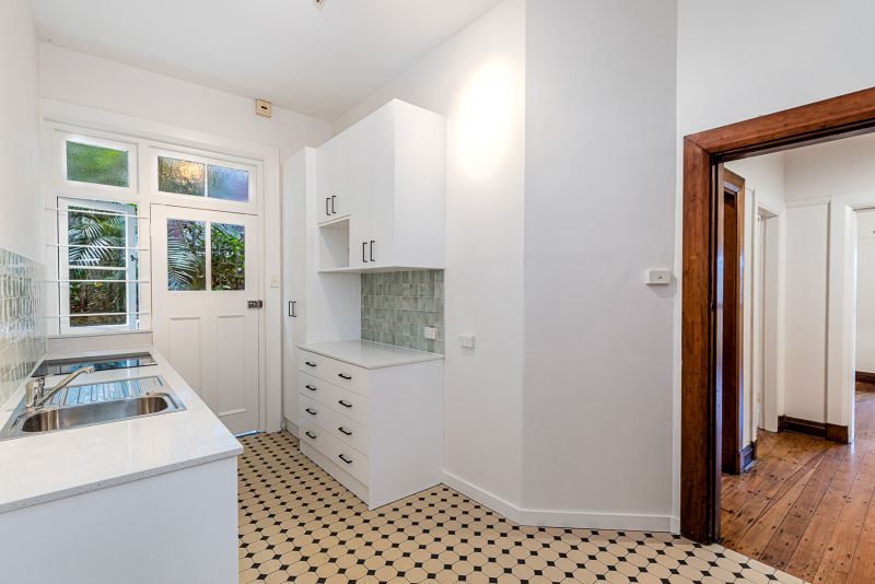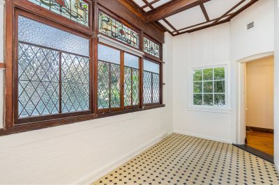 The recently renovated kitchen and bathroom will make your daily living a breeze, while the sunroom, high ceilings, and patterned polished floorboards add a touch of elegance.