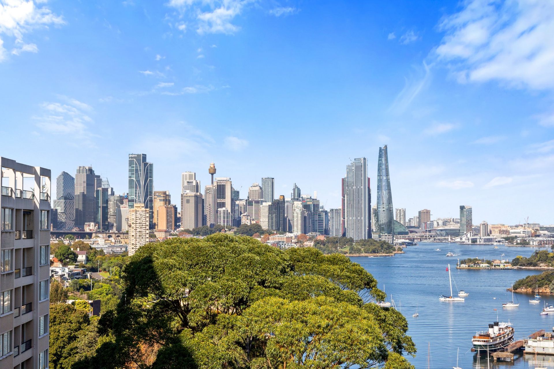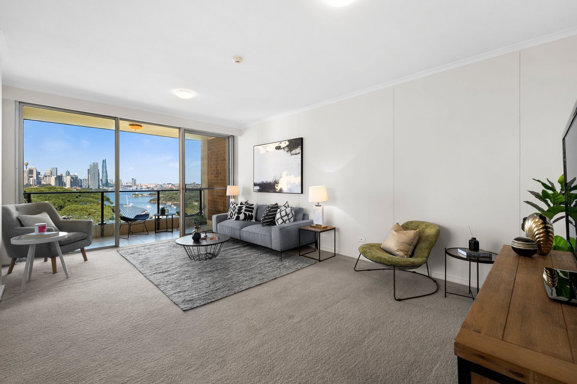 This stunning 2-bedroom apartment boasts breathtaking views of Sydney Harbour and the city skyline & extending to the Blues Mountains.